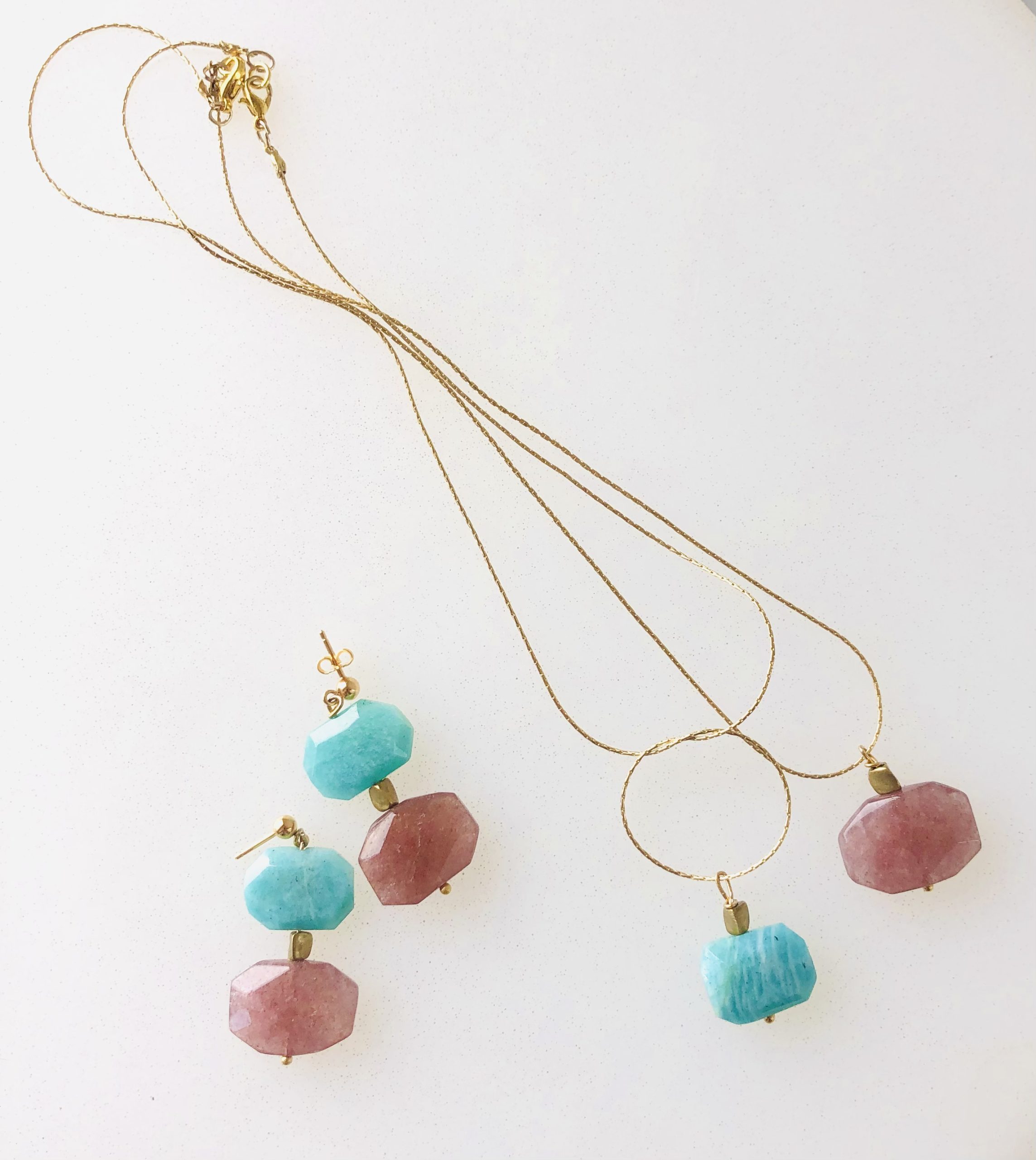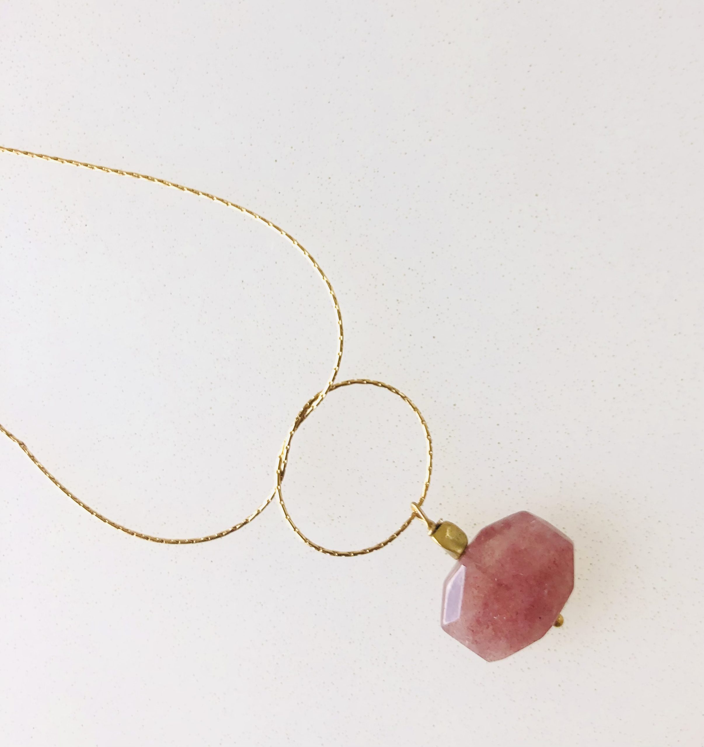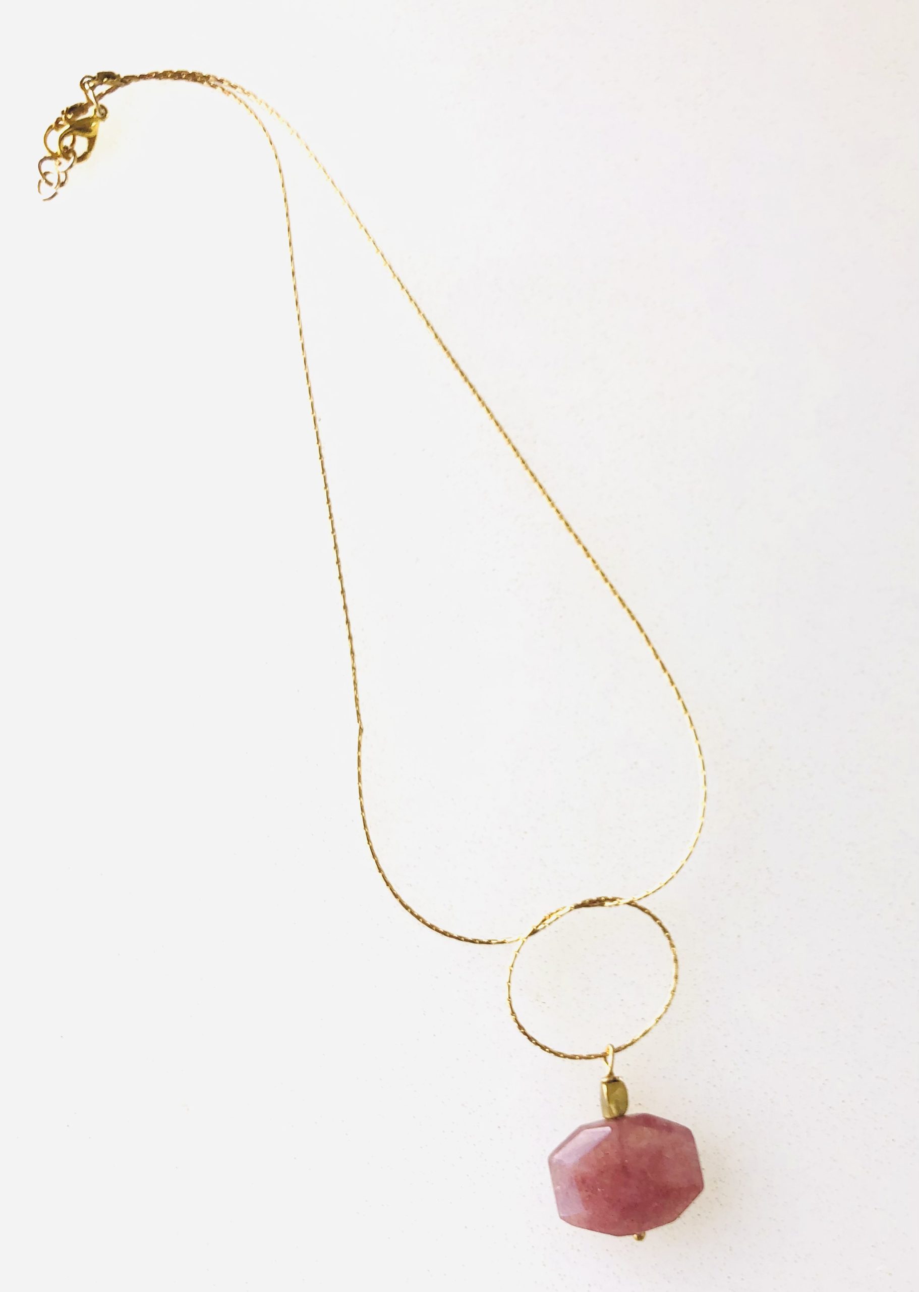 Collar de cadena fina que permite hacer un nudo delantero y llevar de dos medidas y colgante de piedra aventurina rosa