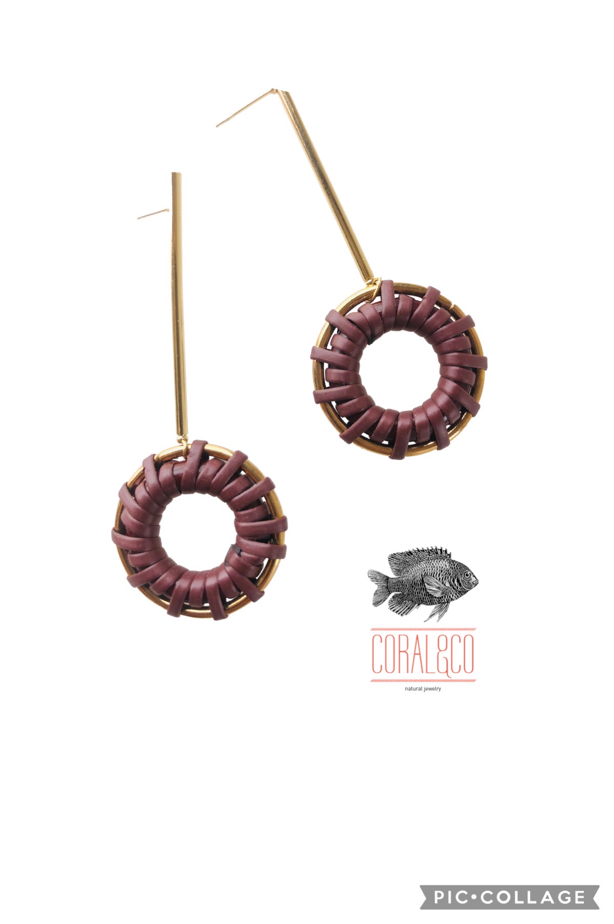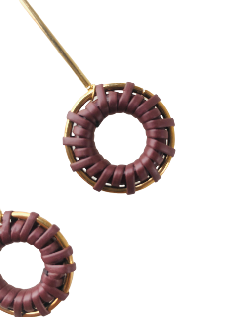 Pendientes con base de barrita de plata bañada y pieza de cuero trenzado